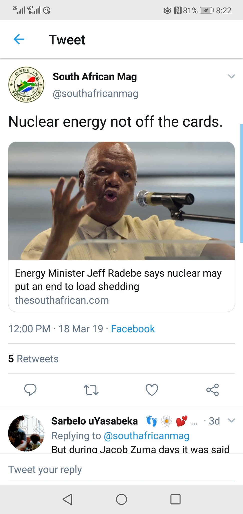 Energy Minister Jeff Radebe Says Nuclear May Put An End To Load
